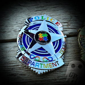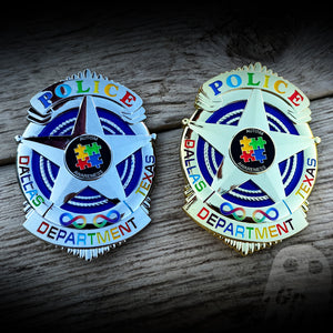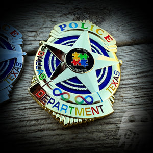 Dallas, Texas Police Department Autism Metal Badge. Available in both silver and gold.
